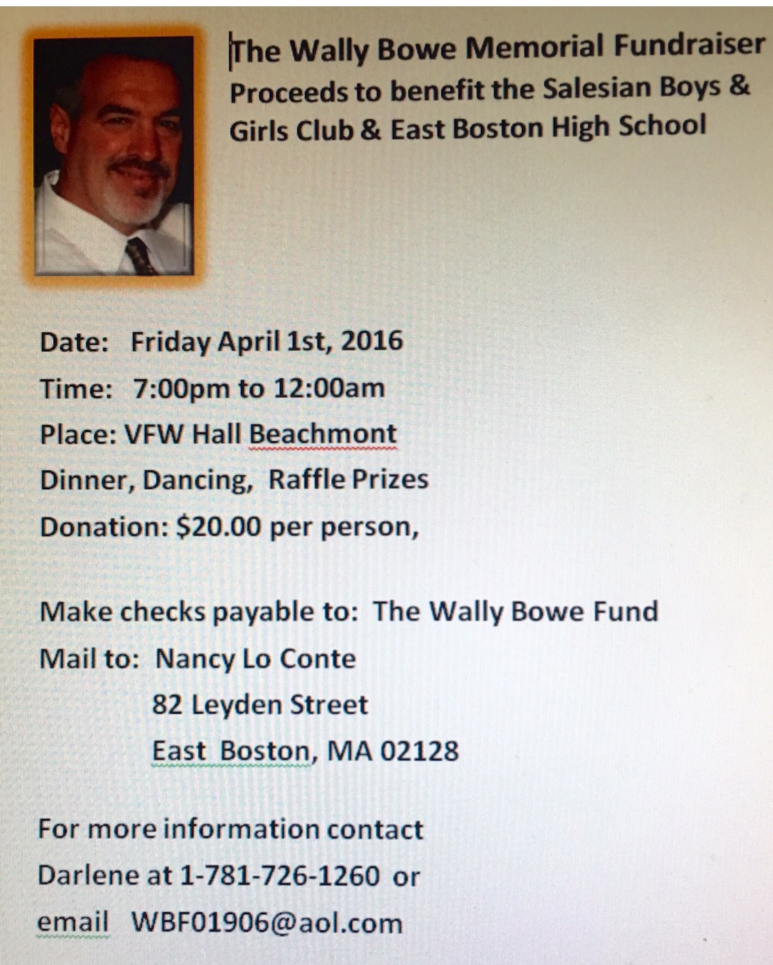 April 1: Wally Bowe Fundraiser for Salesian B&G Club and EBHS