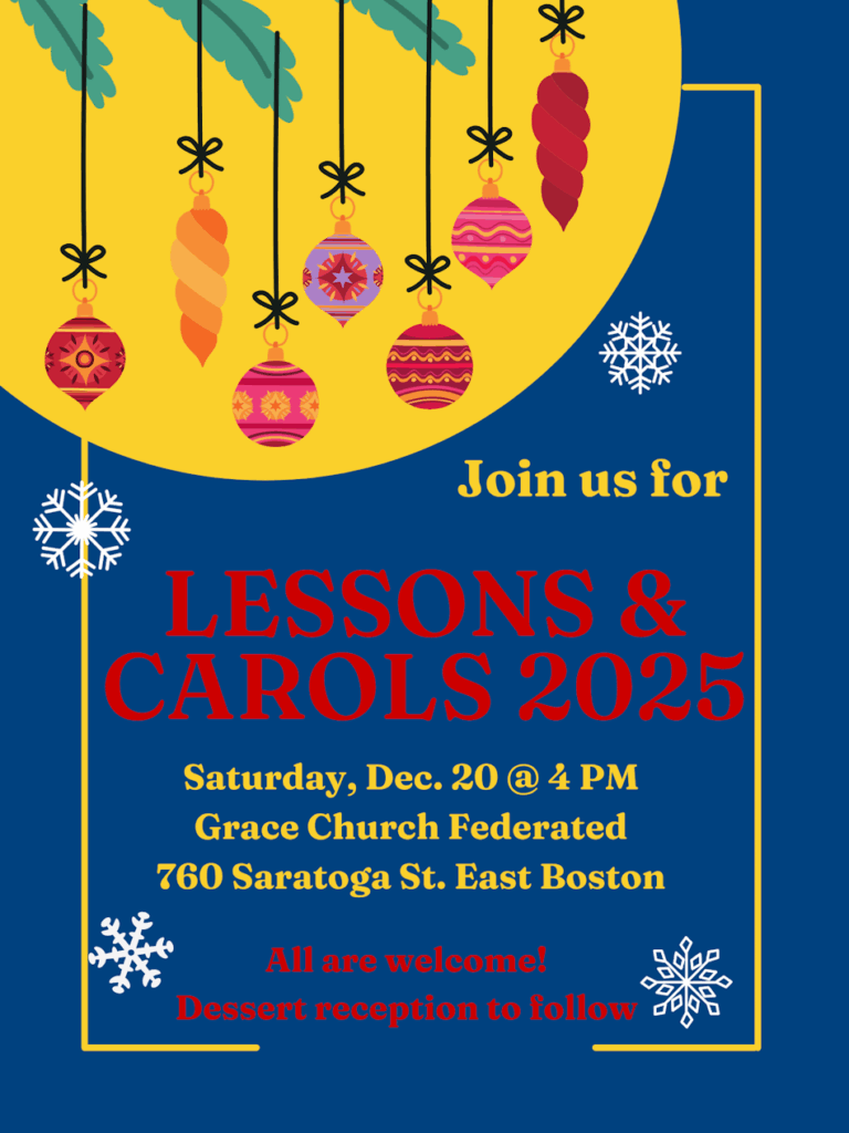 This year’s service will be Saturday, 12/20 at 4 PM and will be followed by a dessert reception.