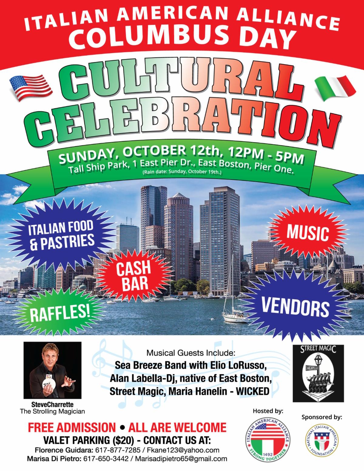 Italian American Alliance hosts Columbus Day Celebration By admin - September 24, 2025 74 Date: October 12, 2025 Time: 12:00 pm - 5:00 pm Calendar: East Boston