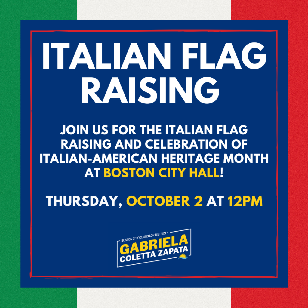 Italian Flag Raising October 2, 2025 at City Hall By admin - September 24, 2025 261 Date: October 2, 2025 Time: 12:00 pm - 2:00 pm Calendar: East Boston