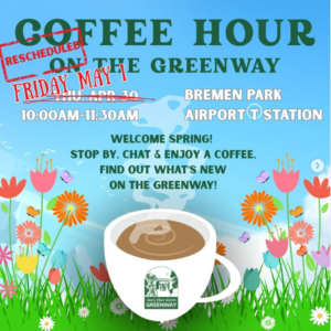 Rescheduled Coffee Hour on the Greenway By admin - April 29, 2026 16 Date: May 1, 2026 Add to Calendar Google CalendarMicrosoft OutlookApple CalendarDownload Time: 10:00 am - 11:30 am Calendar: East Boston This event has been rescheduled to Friday, May 1, 2026