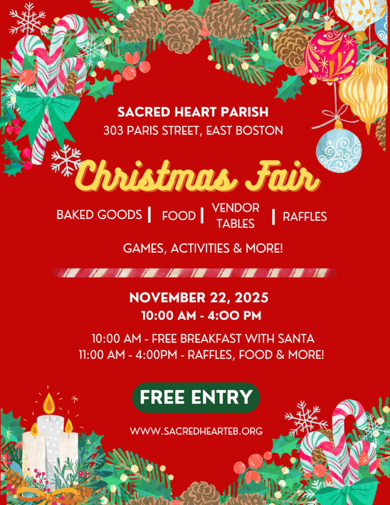 The Sacred Heart Parish Christmas Fair will be held on Saturday, November 22 from 10-4pm. All are welcome to join us for this fun annual event.