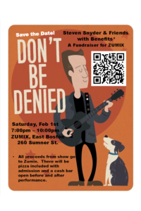Steve Synder’s band is playing its annual fundraiser for ZUMIX again this year on Saturday, February 1st!