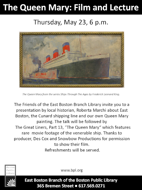 East Boston Friends of the Library May 23, 2019: Film and Lecture on the Queen Mary By Frank Conte - May 11, 2019 762