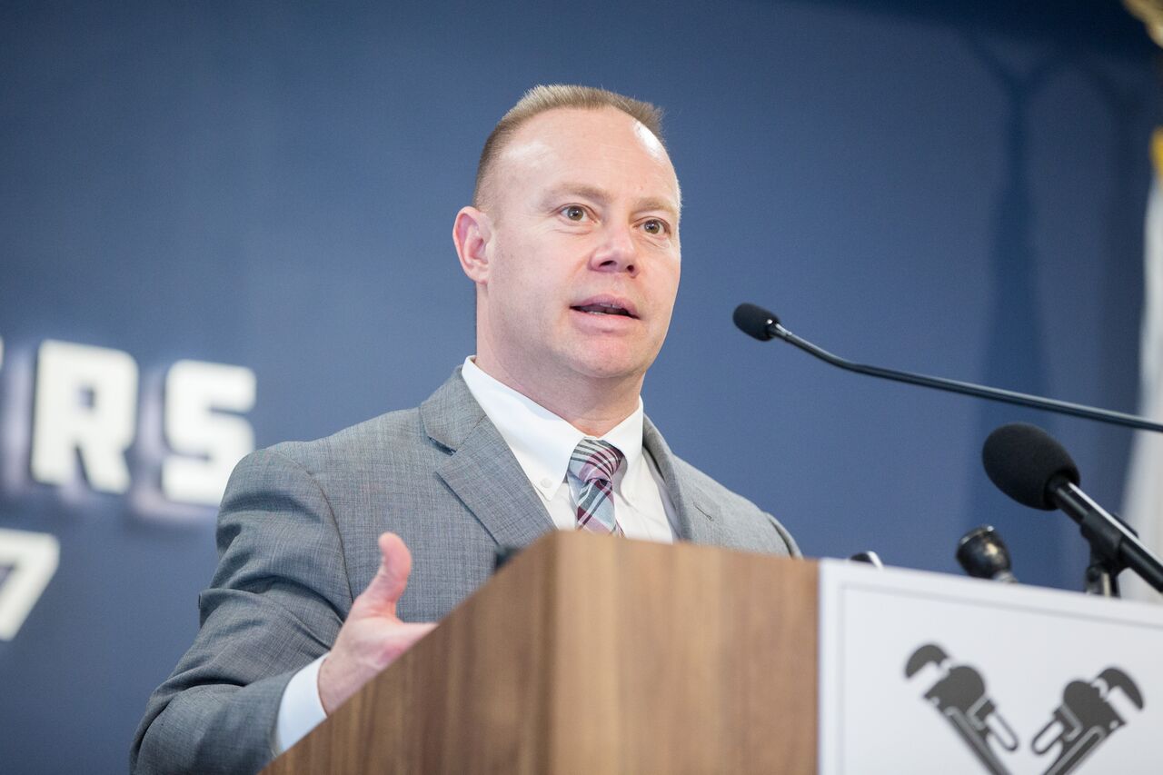 Local 537 Business Manager Brian Kelly addresses crowd |