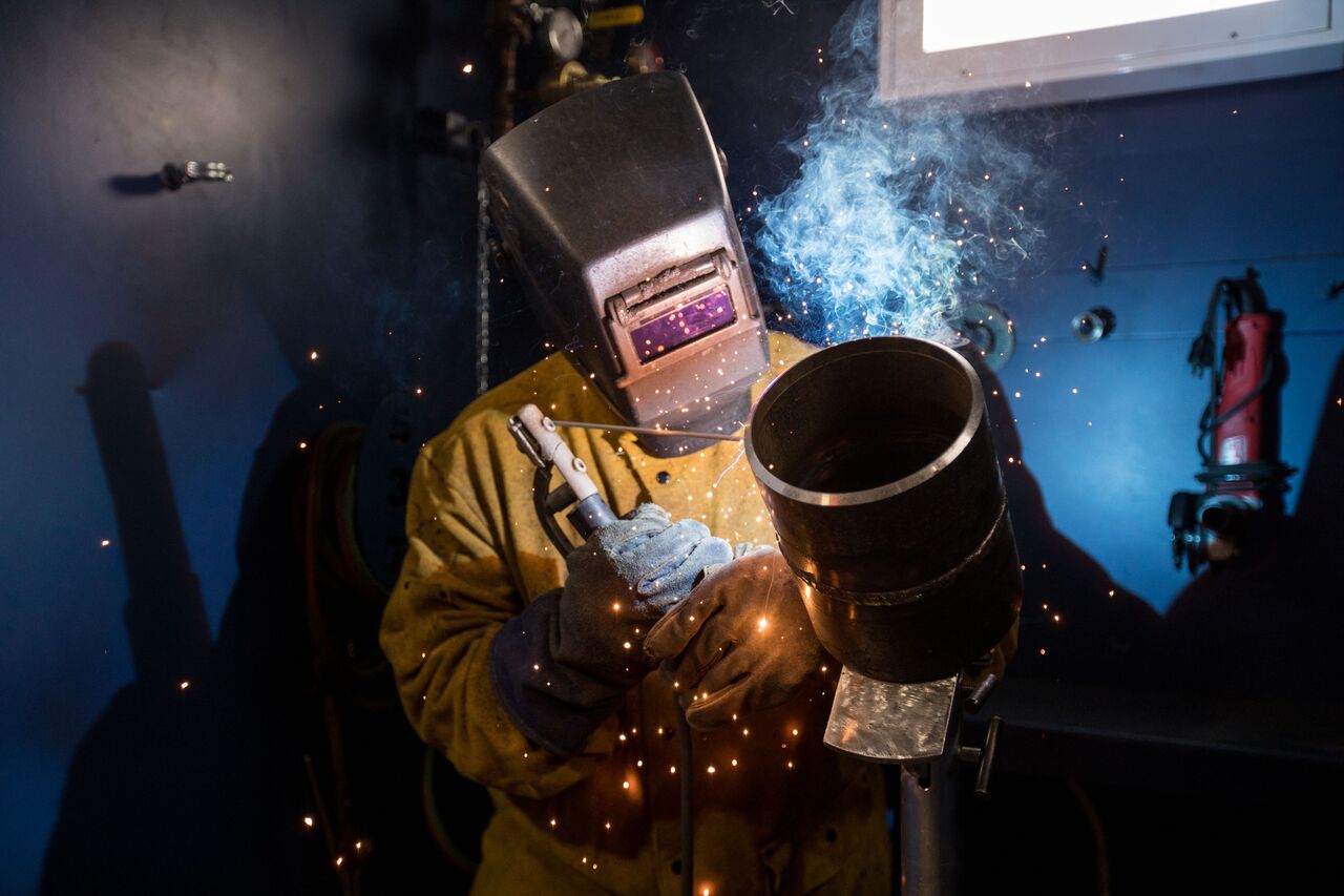 Welding instructor Pete Elwood demonstrates at Pipefitters Local 537’s open house. |