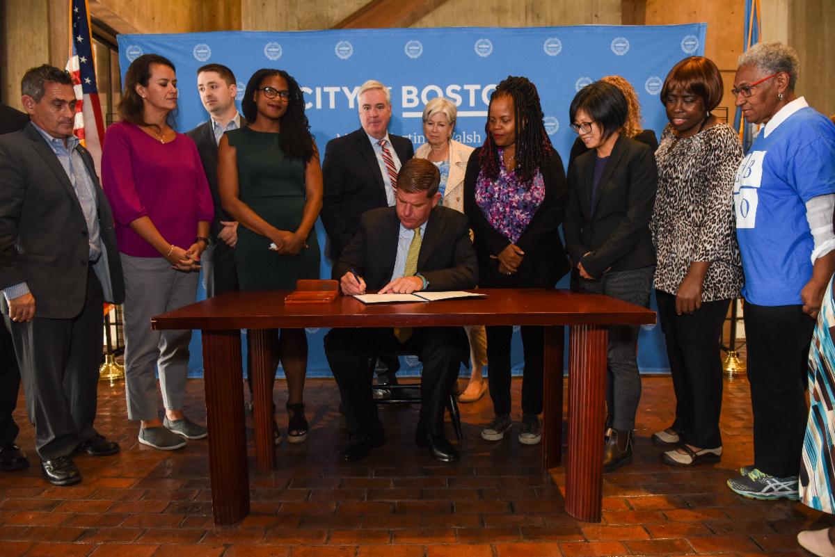 BOSTON – Thursday, September 12, 2019 – Mayor Martin J. Walsh today joined members of the Boston City Council, community residents and advocates as he signed “An Act to Further Leverage Commercial Development to Build Housing, Create Jobs, and Preserve Inclusionary Development.” This Home Rule Petition enables the City of Boston to have more flexibility to fund affordable housing and workforce training through Boston’s Linkage program, and will codify the Inclusionary Development Policy (IDP) into Boston’s Zoning Code to protect the City’s ability to create and fund income-restricted housing. Mayor Walsh proposed the Home Rule Petition in January 2019 as part of his 2019-2020 legislative package. Following the signing, the proposal will move to the Massachusetts Legislature for approval.