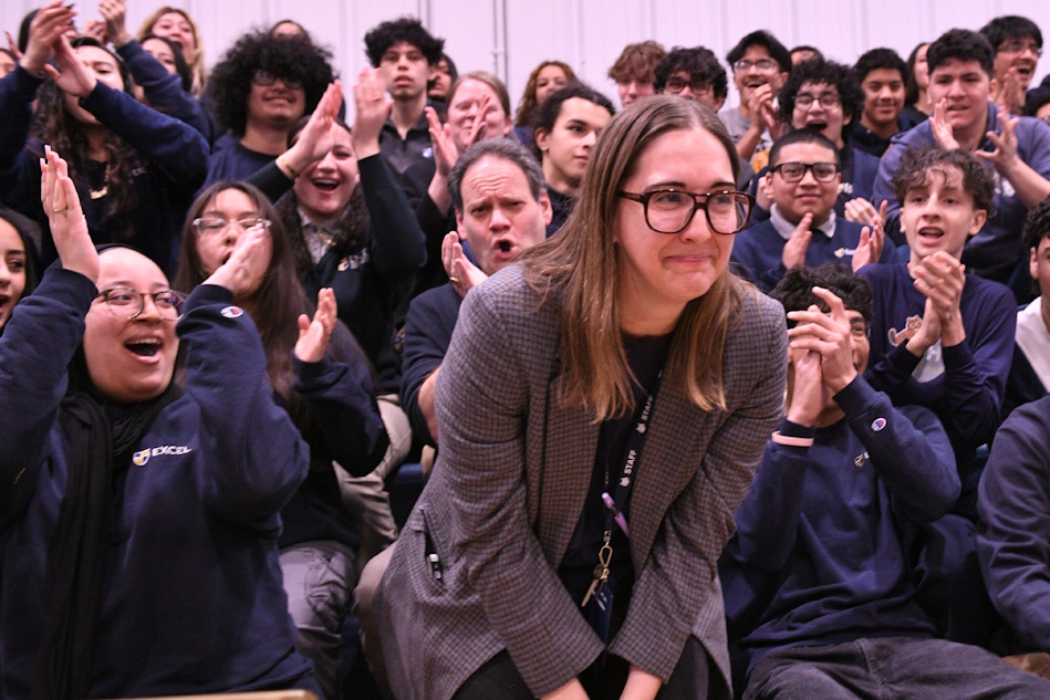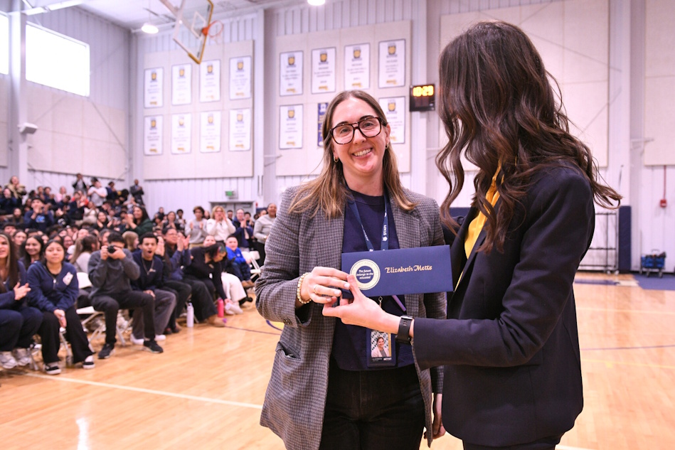 SANTA MONICA, Calif. (Feb. 3, 2026) — This typical Tuesday morning was turned upside down for Excel Academy Charter High School—in the very best way. Starting with a special visit at an all-school assembly from Massachusetts Education Secretary Dr. Patrick Tutwiler and Department of Elementary and Secondary Education Commissioner Pedro Martinez, the true reason for the gathering began to unfold when Jennifer Fuller, Milken Educator Awards vice president, took the stage to announce a life-changing surprise for one exceptional educator: Elizabeth Metts.