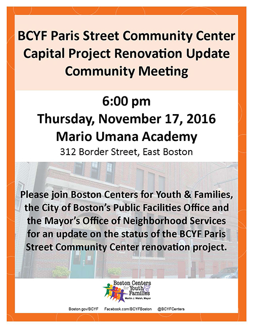November 17, 2016: BCYF to hold meeting to update on Paris Street Gym renovations