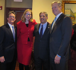 L-R: Revere City Councillor Anthony Zambuto, Laura Rigas, Senator Minority Leader Bruce Tarr, and Governor Charlie Baker. Photo Credit: Friends of Laura Rigas. |