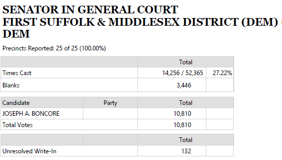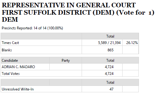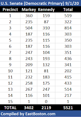 Some Election Results State Primary 2020 for East Boston including Markey versus Kennedy
