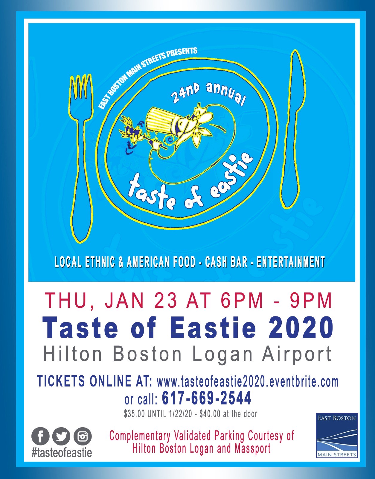 East Boston, MA (January 5,2020) – East Boston Main Streets is proud to present the 24th Annual Taste of Eastie on Thursday, January 23, 2020.