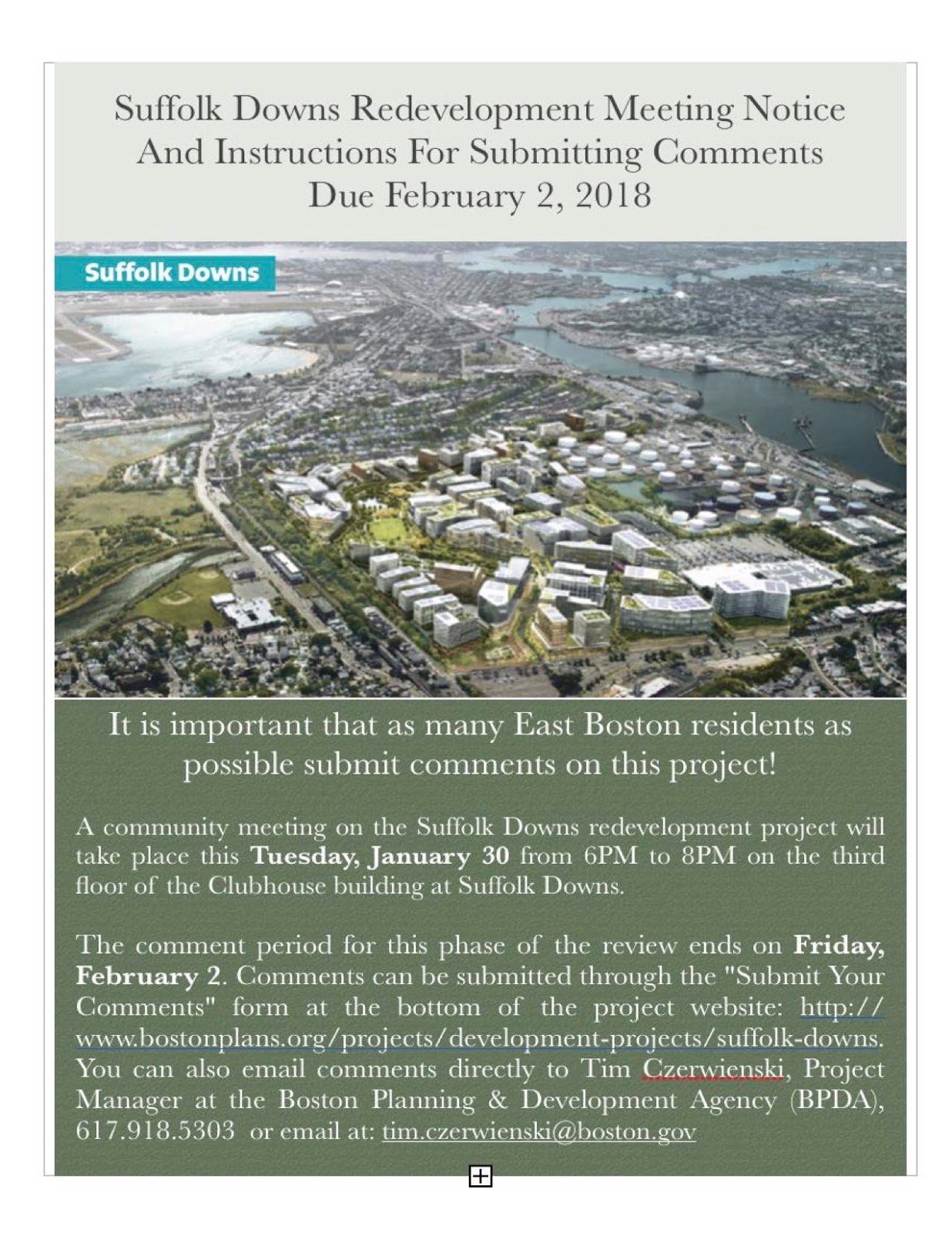 The next Suffolk Downs meeting is January 30, 2018