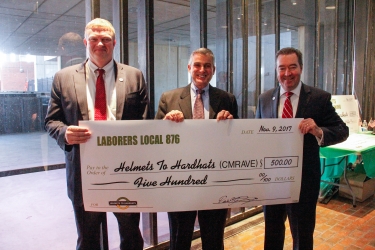 Boston- In recognition of Veterans Day, union affiliates of the Massachusetts Building Trades Council held a ceremony and fundraiser for the Helmets to Hardhats program at the Boston City Hall on November 9th.